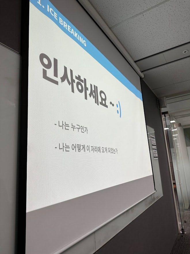 왜 자기소개 시간이 제일 떨리는 지 모르겠다 😂 단순히 안면 트고 대화 나누는 시간인 줄 알았으나 그것은 경기도 오산..