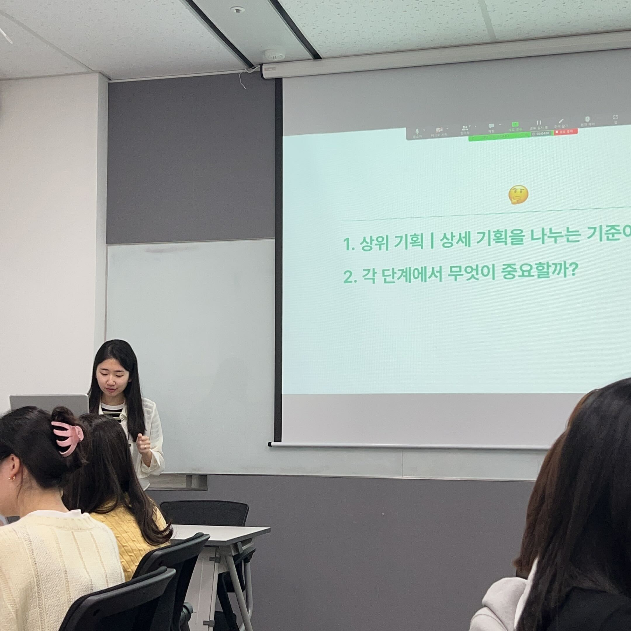 상위 기획과 상세 기획에 대한 발표를 맡았는데, 처음엔 어디서부터 무엇을 얼마나 깊이 설명해야될지 혼란스러워 걱정이 앞섰다.